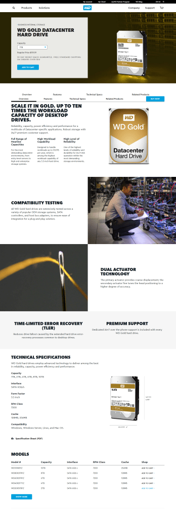 WD Gold Product Page