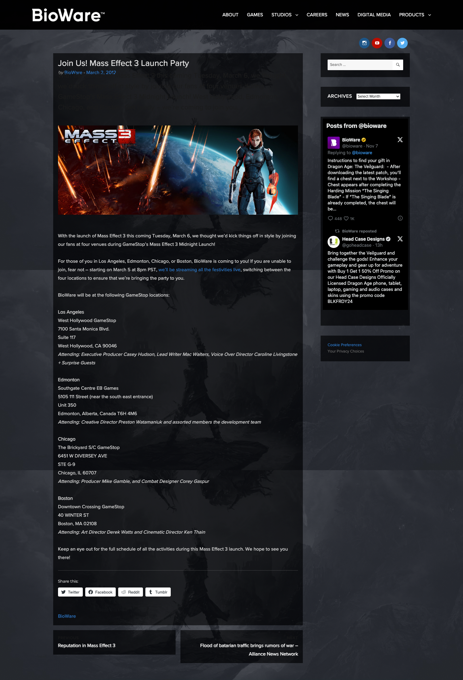 1 AAA title. 3 time zones. 4 hours of live, original program. Yes, Mass Effect 3 was launching, and we wanted to make it a party for everyone.